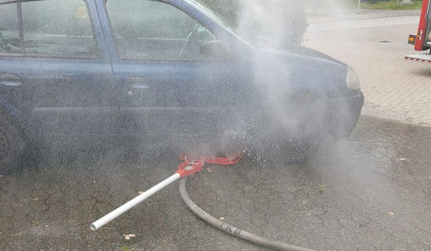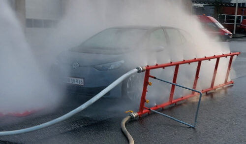 The Fire Isolator Mobile Watermist Applicator 138 (FI-MWA138) is a further development of the Watermist 126, a revolutionary product for fighting car fires and specially developed to limit the fire in electric vehicles. It is longer than the 126 version.